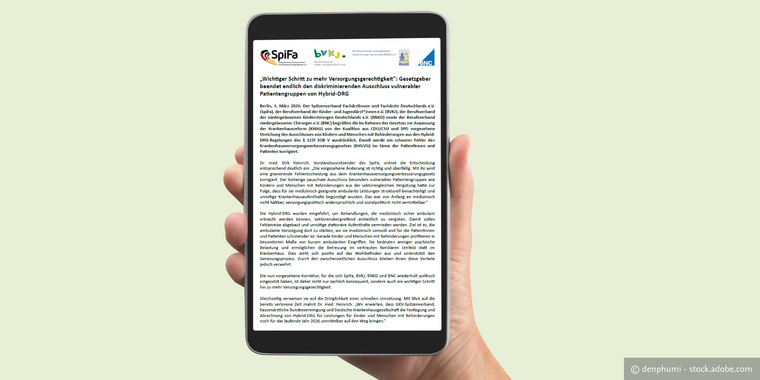 Der Spitzenverband Fachärztinnen und Fachärzte Deutschlands e.V. (SpiFa), der Berufsverband der Kinder- und Jugendärzt*innen e.V. (BVKJ), der Berufsverband der niedergelassenen Kinderchirurgen Deutschlands e.V. (BNKD) sowie der Berufsverband niedergelassener Chirurgen e.V. (BNC) begrüßen die im Rahmen des Gesetzes zur Anpassung der Krankenhausreform (KHAG) von der Koalition aus CDU/CSU und SPD vorgesehene Streichung des Ausschlusses von Kindern und Menschen mit Behinderungen aus den Hybrid-DRG-Regelungen des § 115f SGB V ausdrücklich. Damit werde ein schwerer Fehler des Krankenhausversorgungsverbesserungsgesetzes (KHVVG) im Sinne der Patientinnen und Patienten korrigiert.